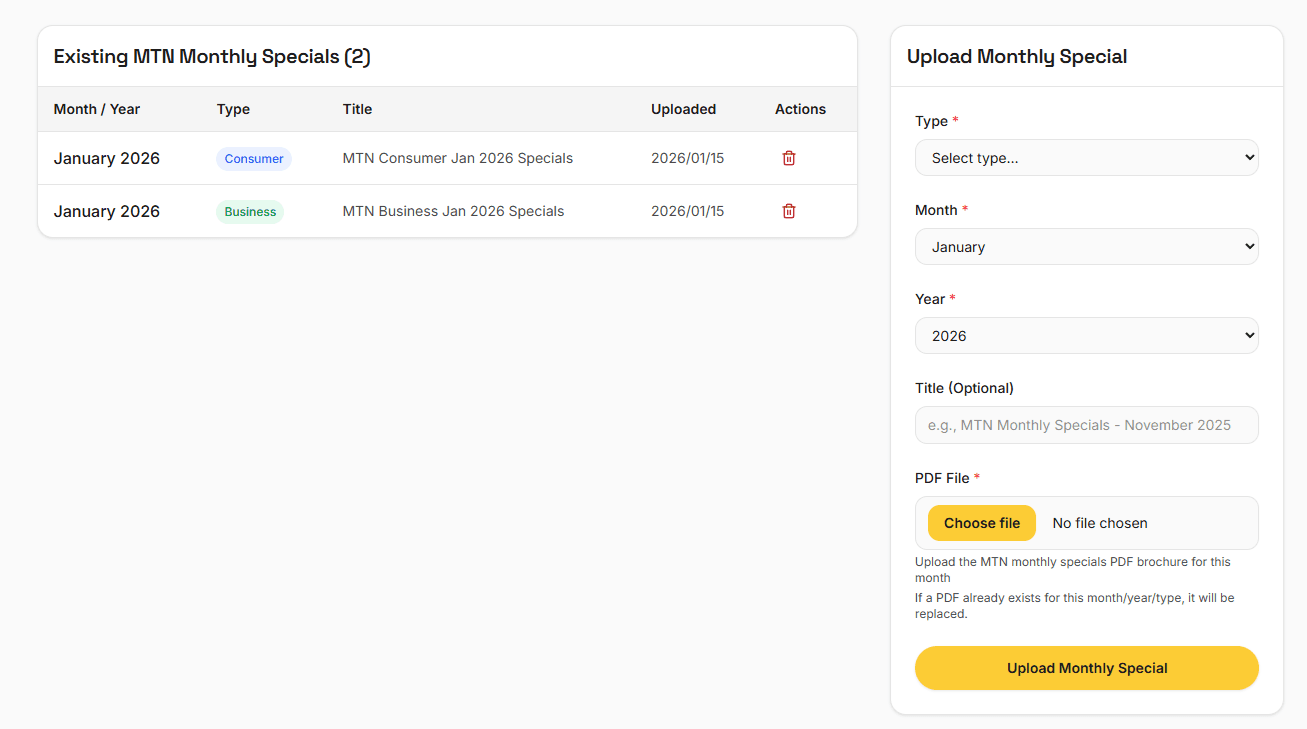 Reduced dev dependencyMTN specials platform with admin-managed content, monthly brochure publishing, and a production-ready marketing website.